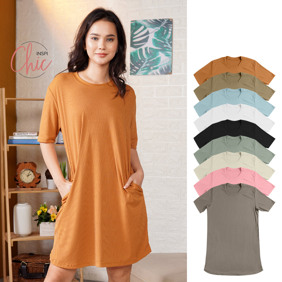 INSPI Chic Dress for Woman Plain Ribbed Knit Trendy Tops Comfortable Dress for Women Basic Long Dresses 3/4 Bodycon