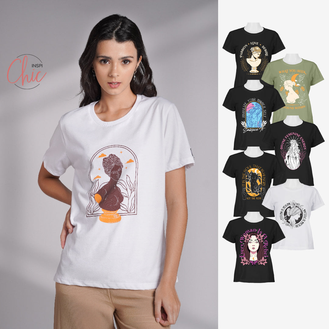 INSPI Chic Goddess Round Neck Graphic T Shirt for Women Korean Trendy Tops Women Tees Summer Outfit Feminine Energy