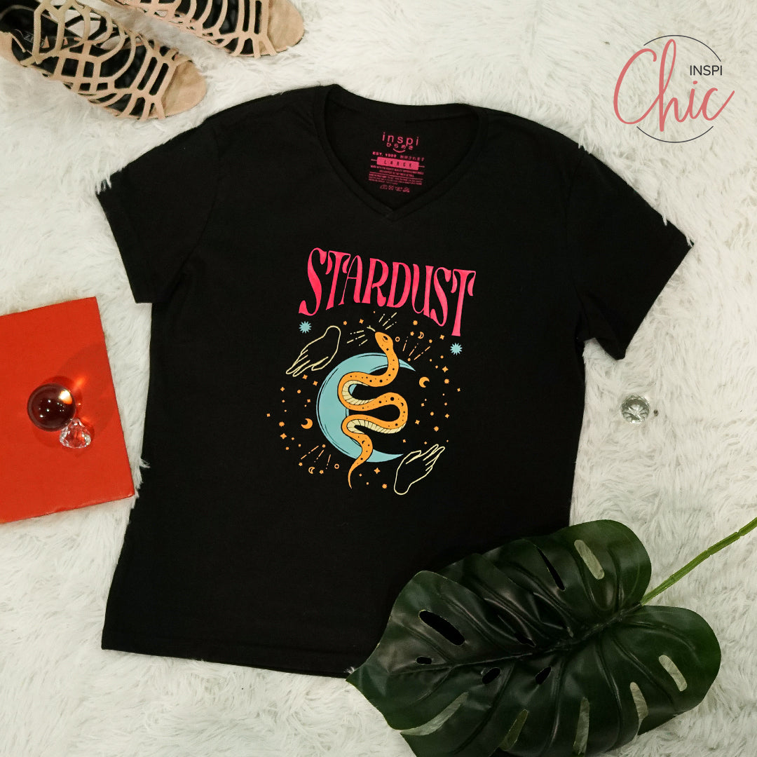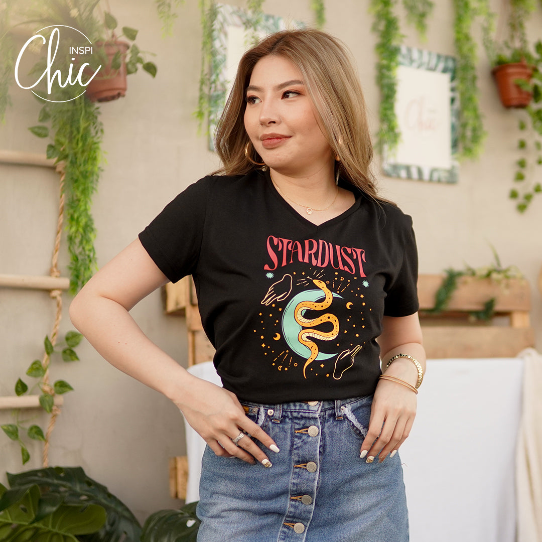 INSPI Chic Stardust V Neck Tshirt For Women Mystical Graphic Tees Cotton Trendy T Shirt