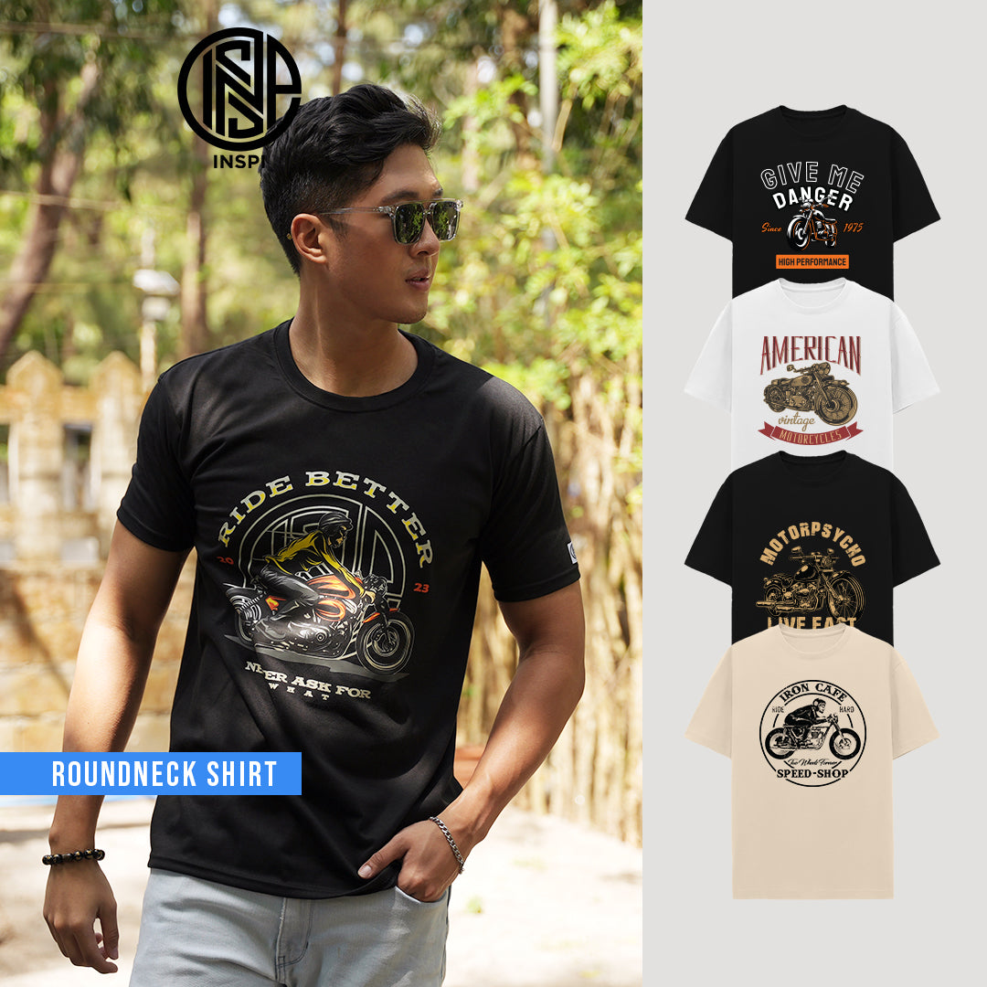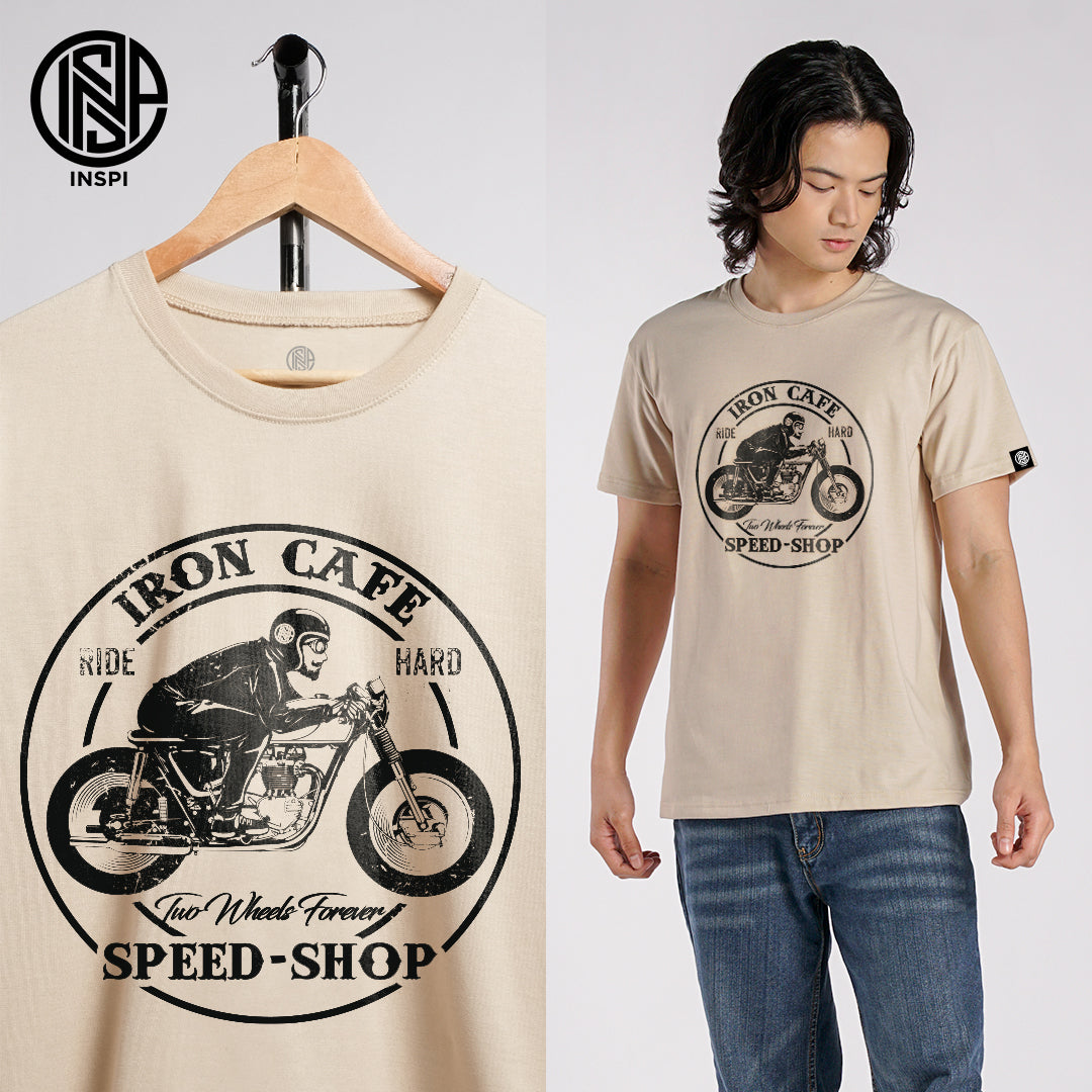 INSPI Motorbike Collection Graphic Tshirt for Men Korean Trendy Tops For Women Summer Printed Tees Iron Cafe