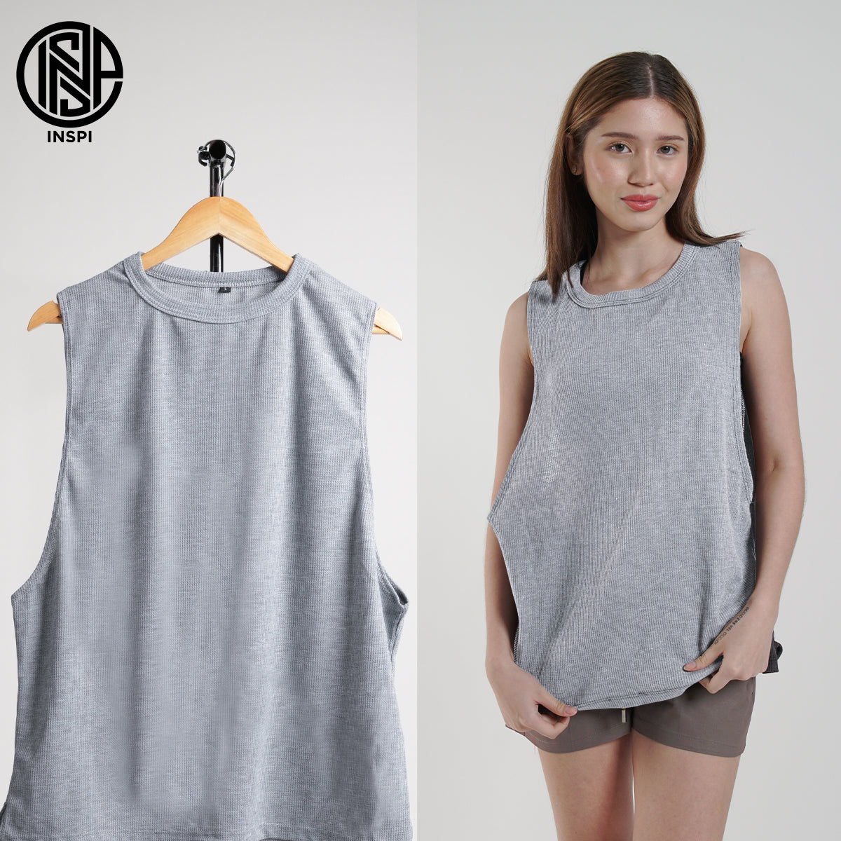 INSPI Waffle Muscle Tee Acid Gray Sando for Men Plain Sleeveless Tank Top Gym Workout Exercise Beach Outfit