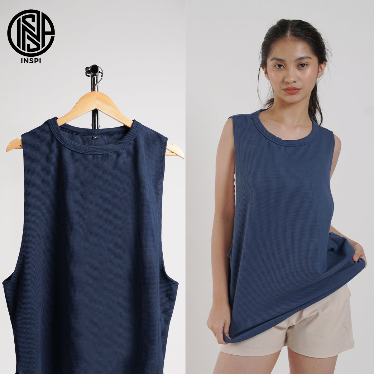 INSPI Waffle Muscle Tee Blue Sando for Men Plain Sleeveless Tank Top Gym Workout Exercise Beach Outfit