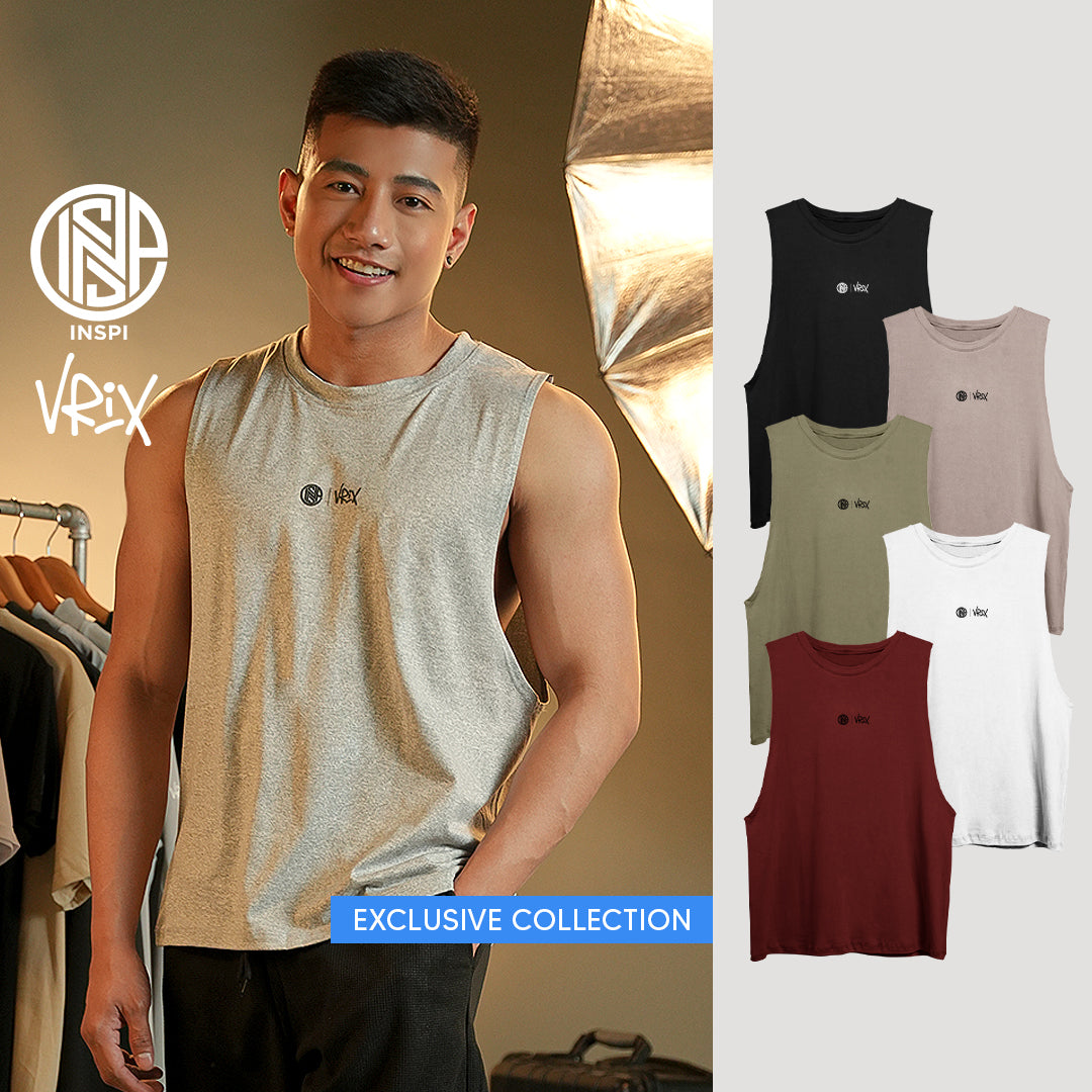 INSPI x Vrix Muscle Tee Sando for Men Tank Tops Korean Style Workout Clothes Exercise Gym Outfit