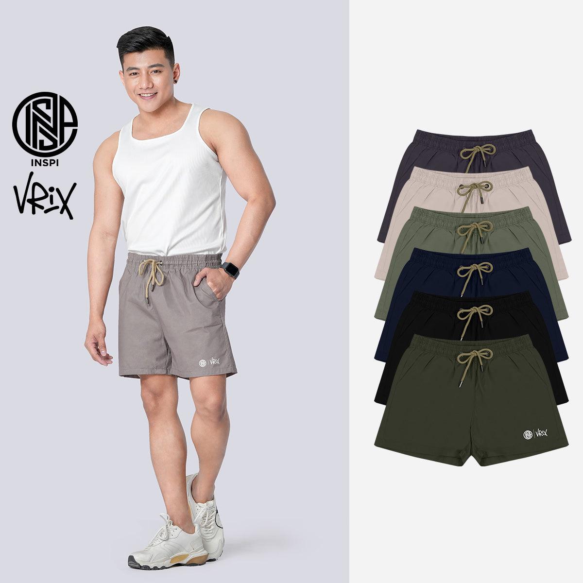 INSPI x Vrix Twil Shorts with Drawstring and Pockets Dark Gray